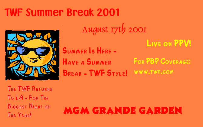 To many TWF fans, Summer Breaks 2001 and 2002 don't exist, such is the hatred for how these events turned out. Summer Break 2001 became notorious for beginning Marz's "ego trip" within the company that would only end exactly a year later. Marz got his "rematch to end all rematches" with NJS and The Shott from May's WrestleMANIA and made a mockery of the TWF with the ease of his victories. To annoy fans further, this took the place of the planned main event between Mr. BIG and High Voltage in what has since become one of their most famous matches - the double tables encounter.